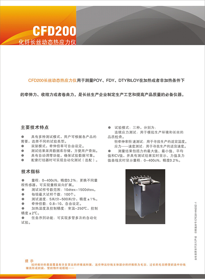 產(chǎn)品名稱: CFD200 化纖長(zhǎng)絲動(dòng)態(tài)熱應(yīng)力儀